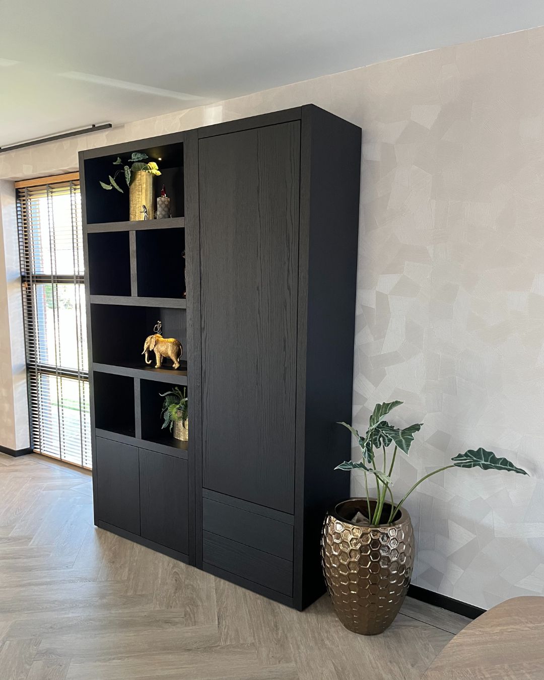 Een maatwerkkast kopen betekent eindeloze keuzes. Wil je een (wand)kast met deuren of open vakken? Of misschien een uniek accent zoals een wijnkast of een kast met aquarium? Wij realiseren alles. Zo hebben wij eerder een kast van bijna 500 kilo gemaakt met een volledig geïntegreerd aquarium. Deze kast is constructief aangepast en voorzien van demontabele legplanken, waardoor onderhoud eenvoudig is.