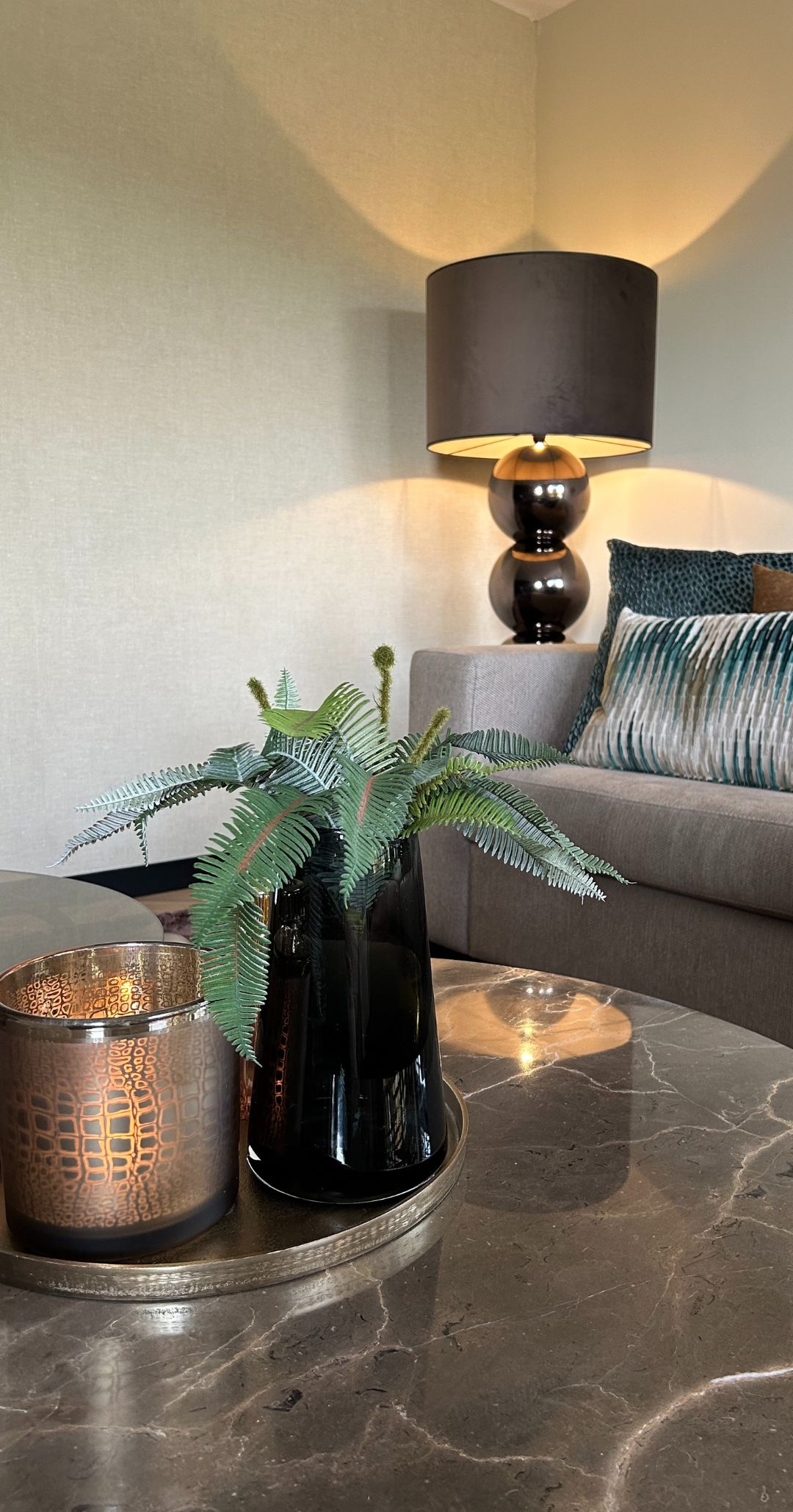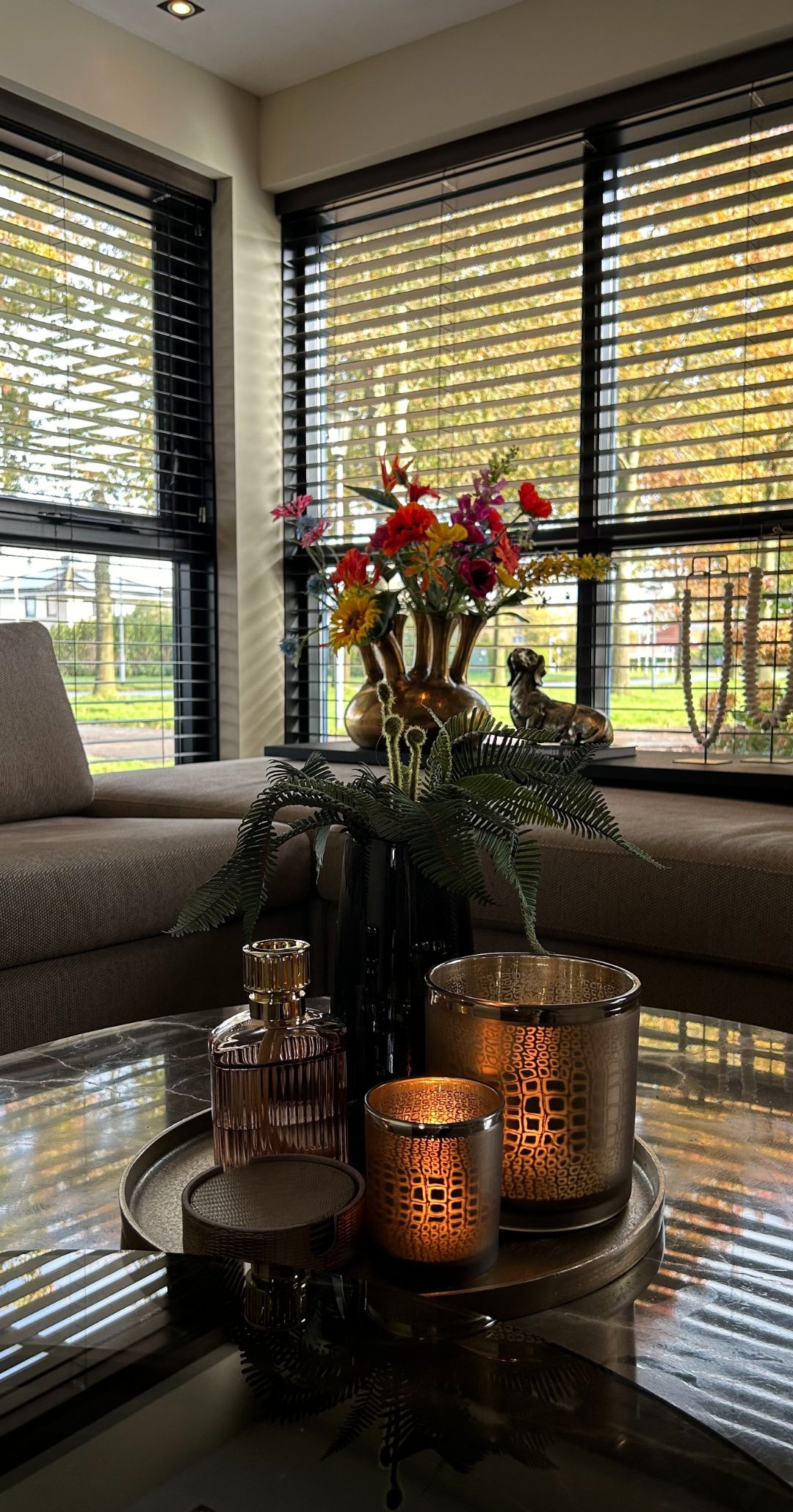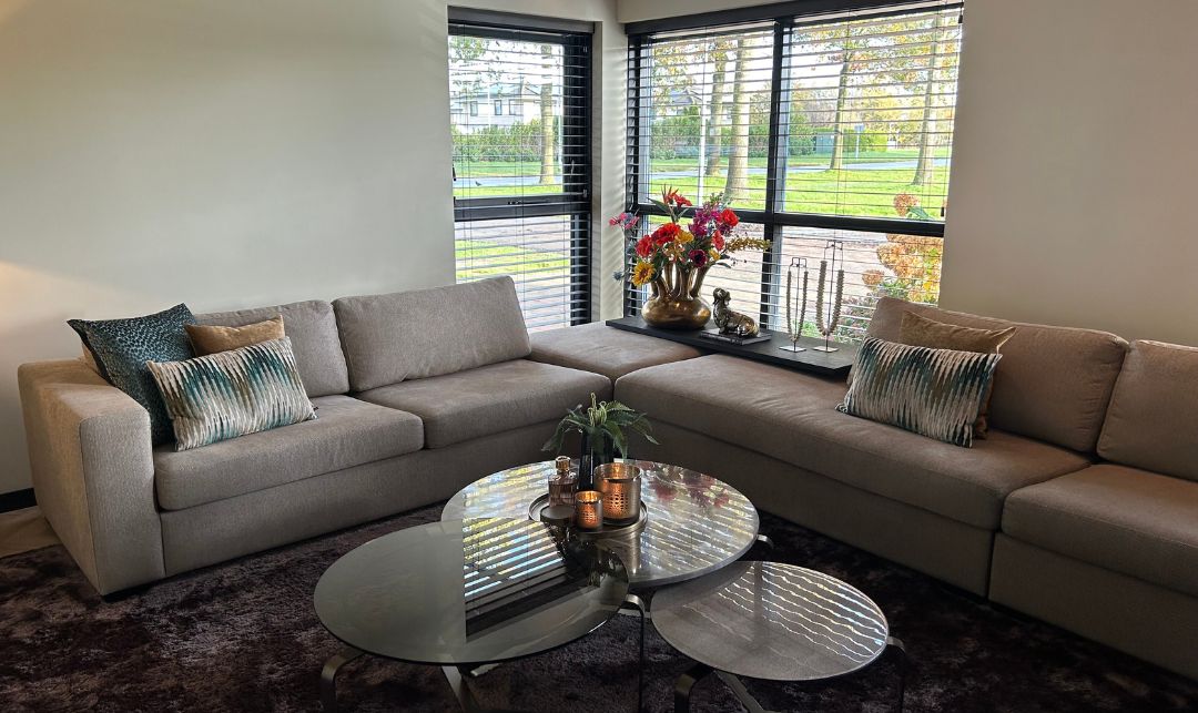 Uiteraard is de woonkamer helemaal afgestyled met chique accessoires, zachte kussens en sfeervolle verlichting. Dit versterkt de luxe Hotel Chique uitstraling en zorgt ervoor dat de ruimtes niet alleen mooi ogen, maar ook prettig zijn om in te leven.