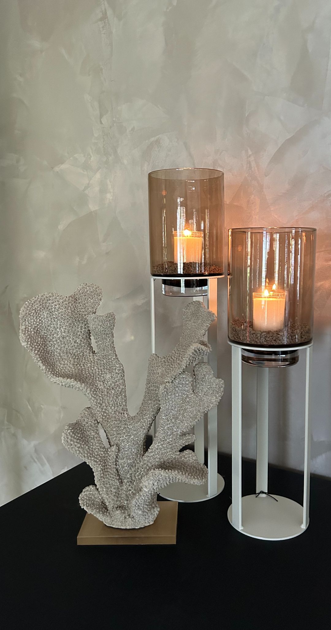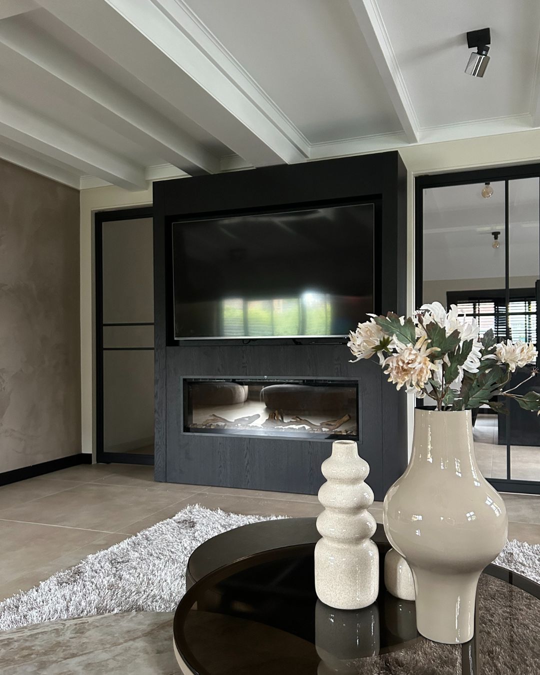 Uiteraard hebben wij de ruimtes compleet afgestyled met zorgvuldig gekozen accessoires. Van kussens en vazen tot zuilen van Haans en andere chique accenten: elk detail is met zorg toegevoegd om een warm en elegant geheel te creëren.