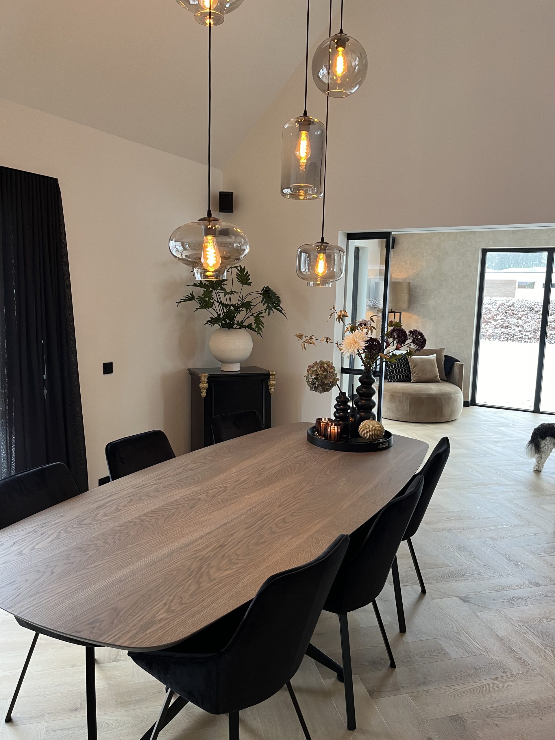De kracht van dit interieur zit in de samenhang. De stijl van de woonkamer is bewust doorgetrokken naar de keuken, waardoor er één geheel ontstaat dat in balans voelt.