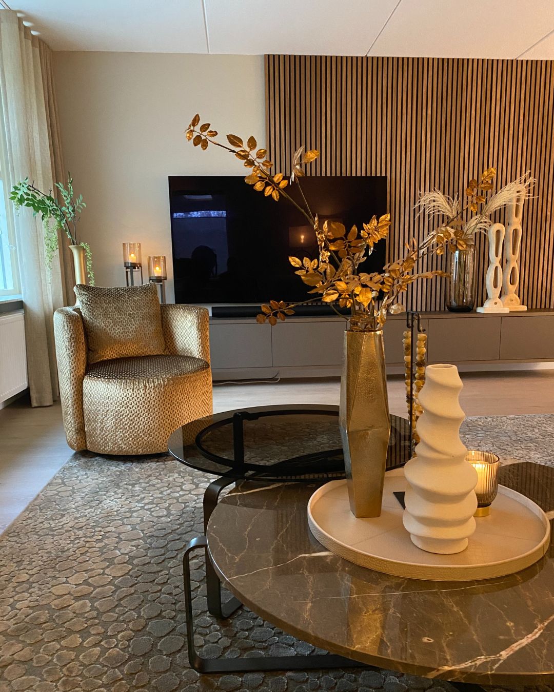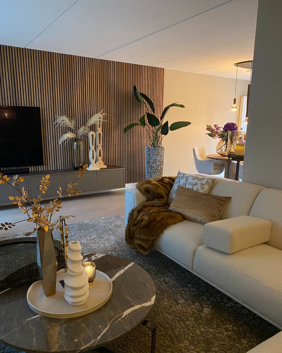 Stijlvolle en luxe metamorfose van de woonkamer
